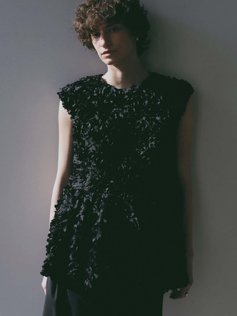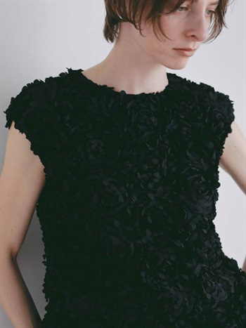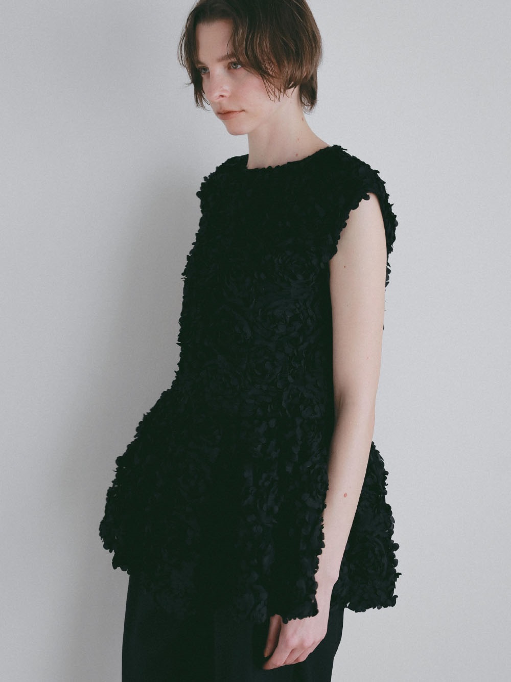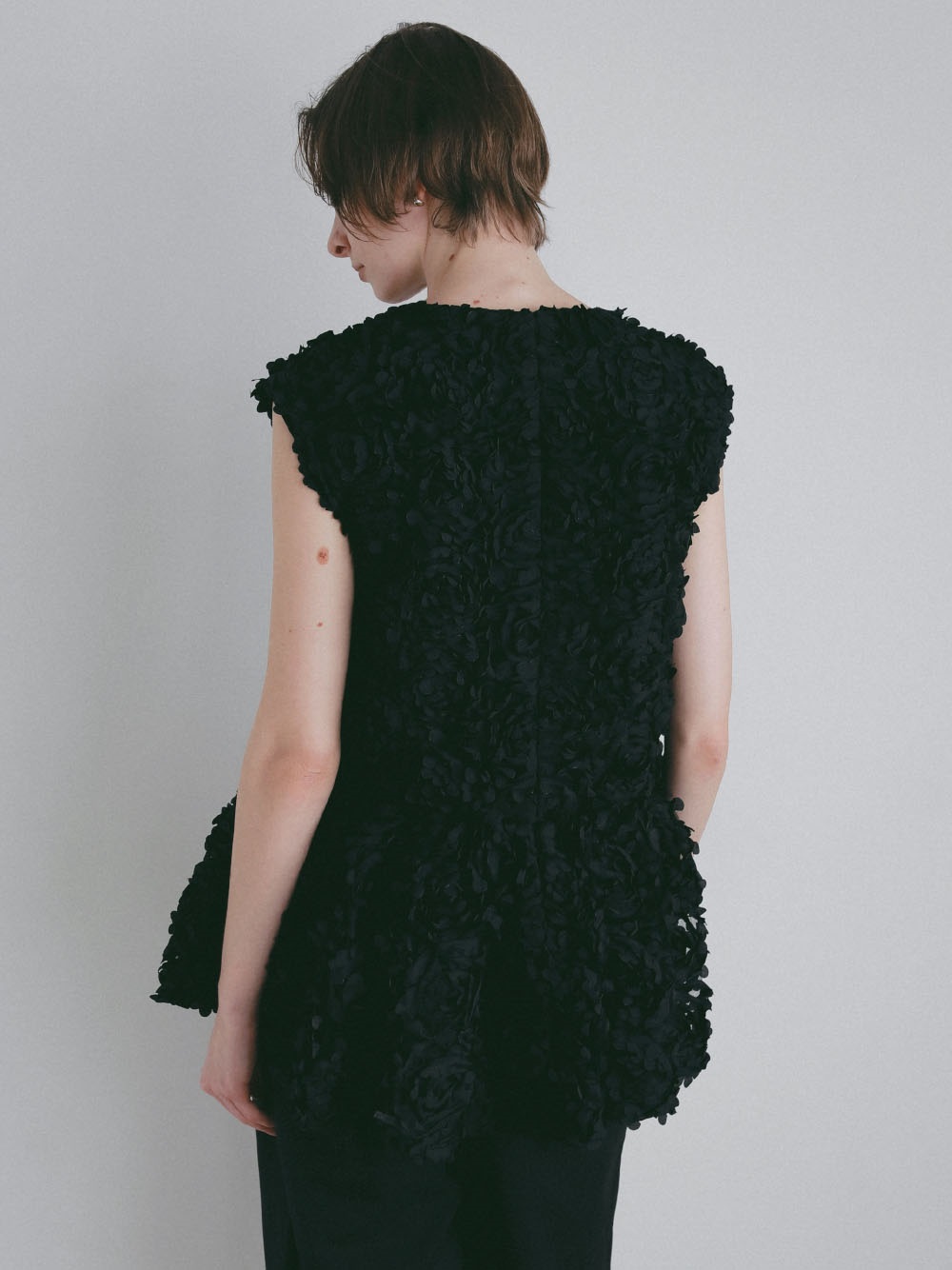 立体的なレースで仕立てた華やかで印象的なブラウス。