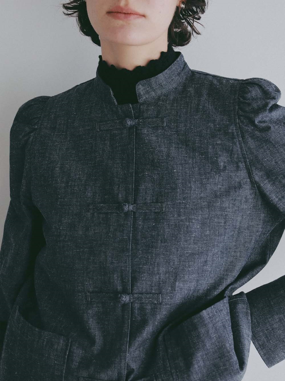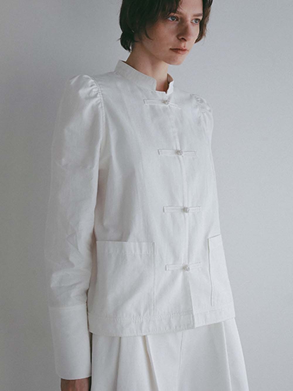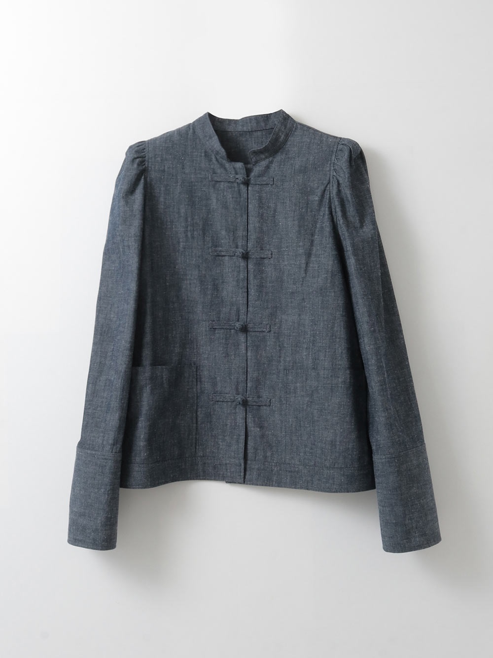 適度にハリのあるコットンリネンを使用したチャイナブラウス。
