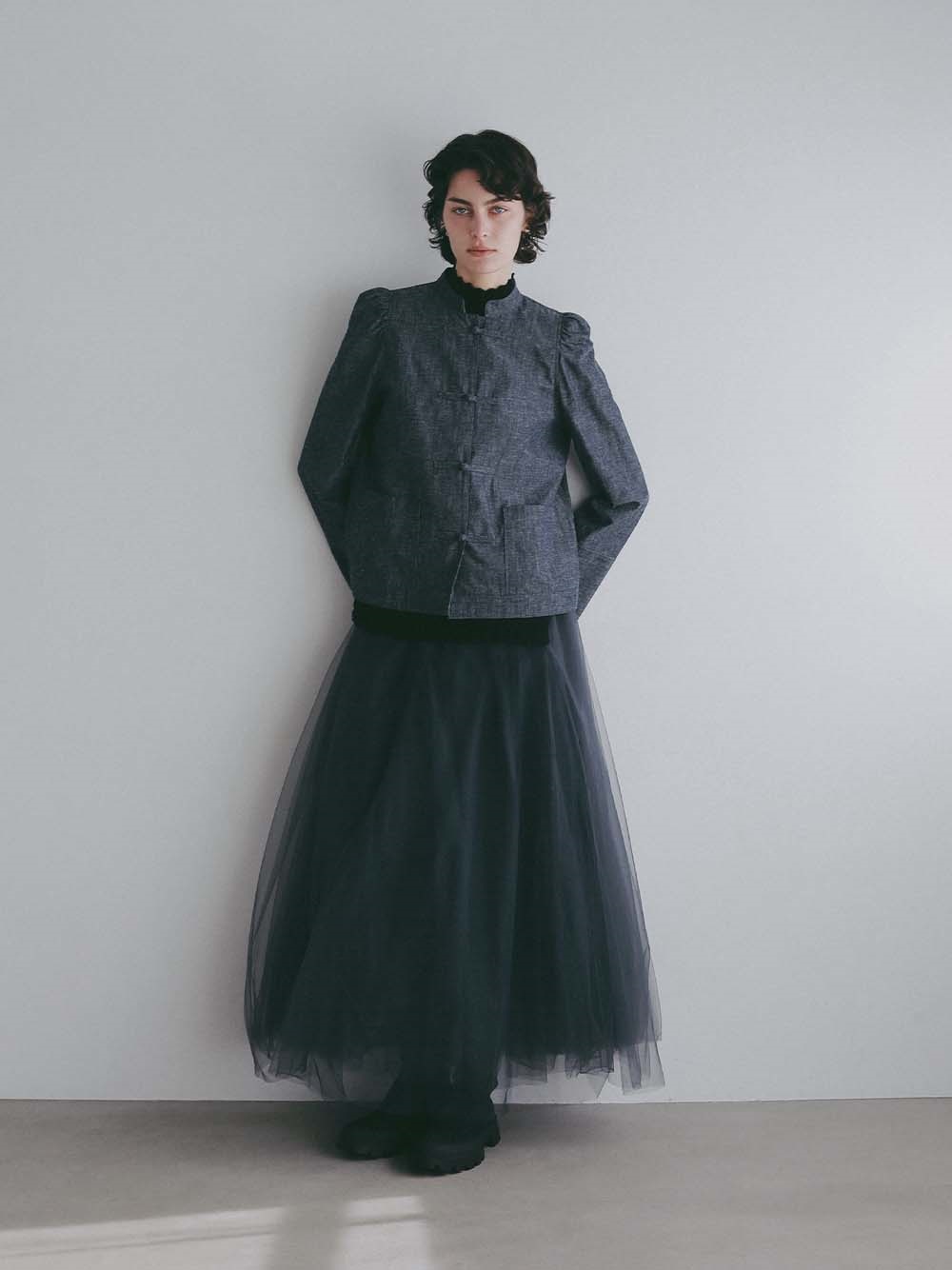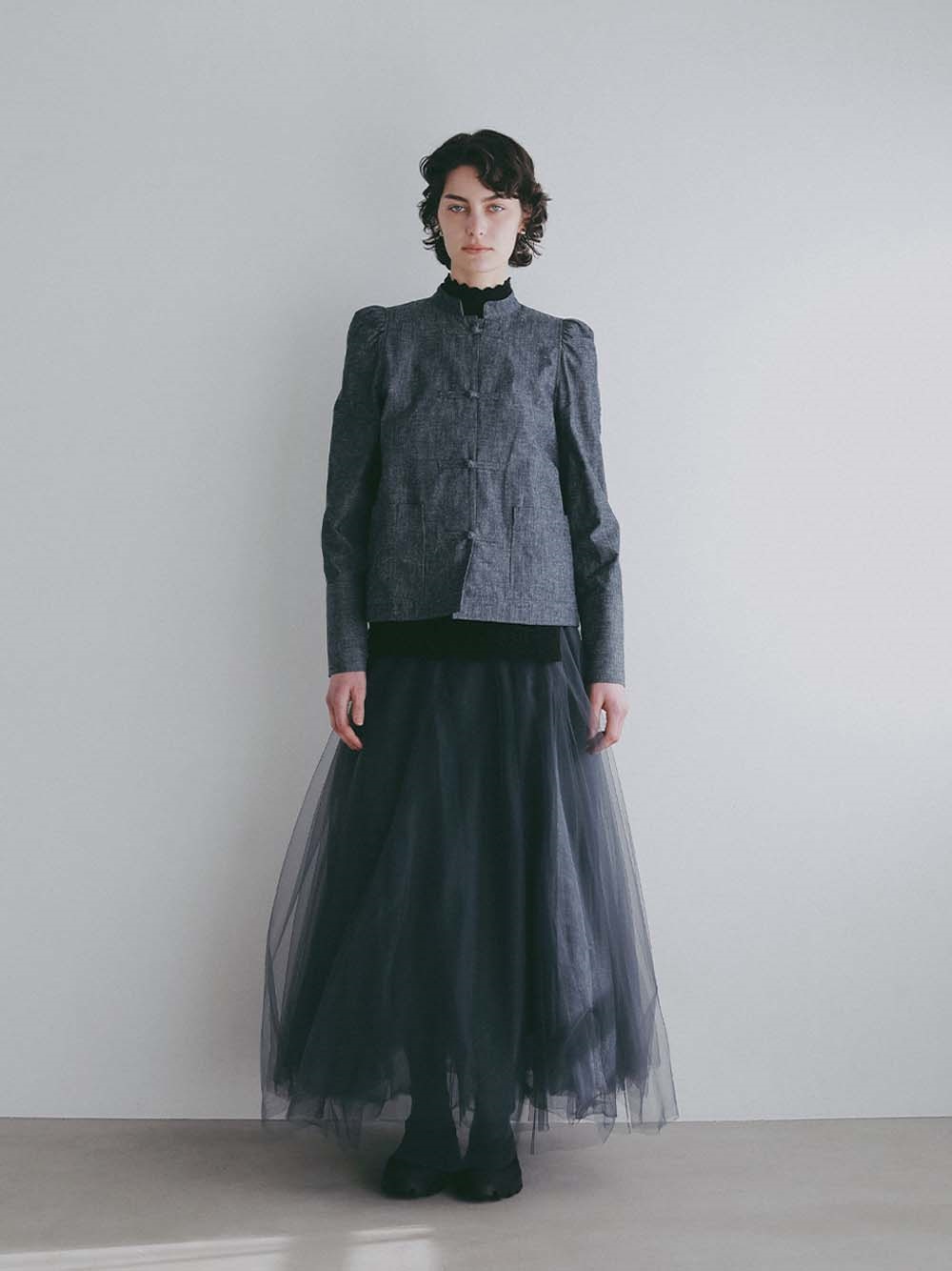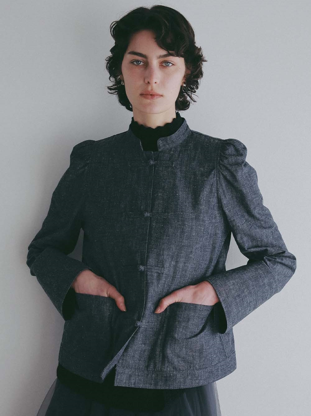 適度にハリのあるコットンリネンを使用したチャイナブラウス。