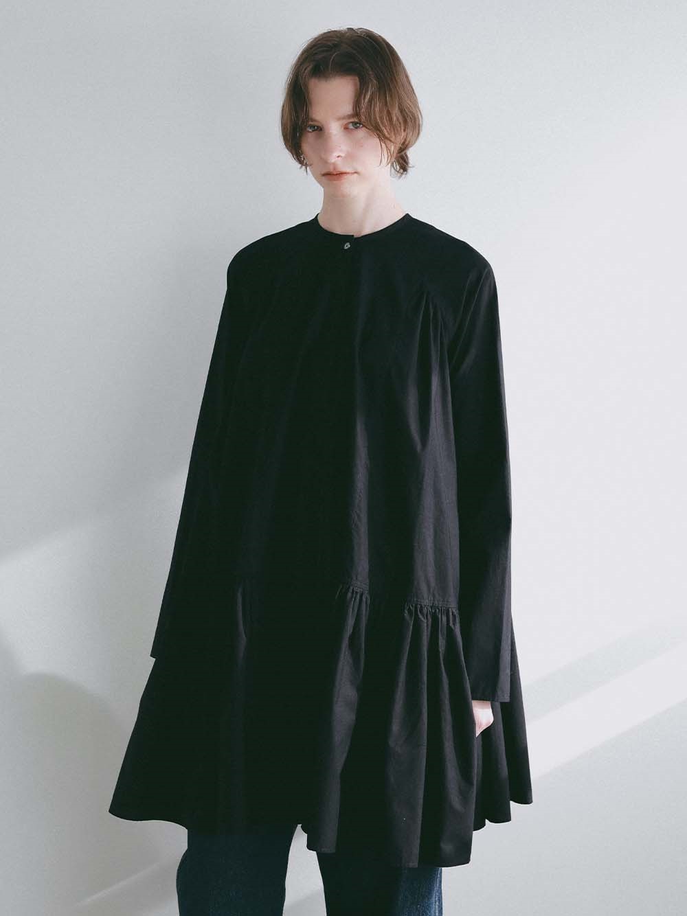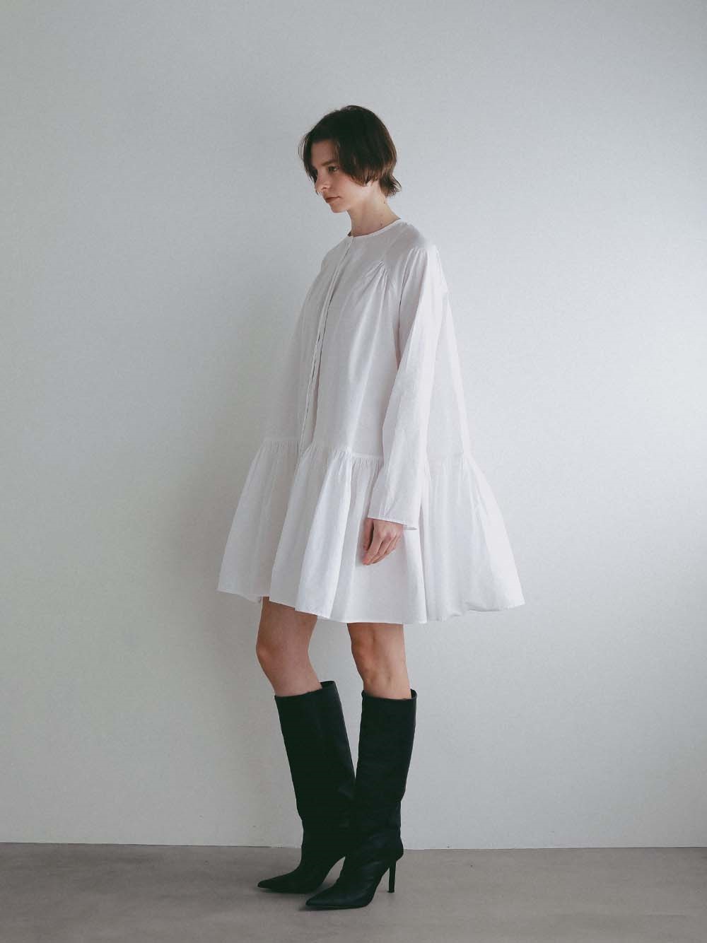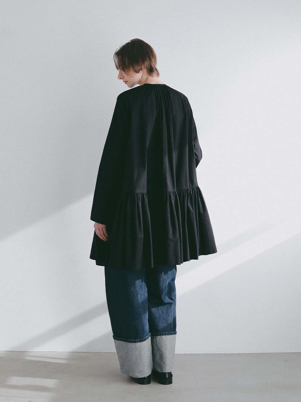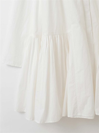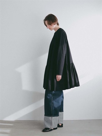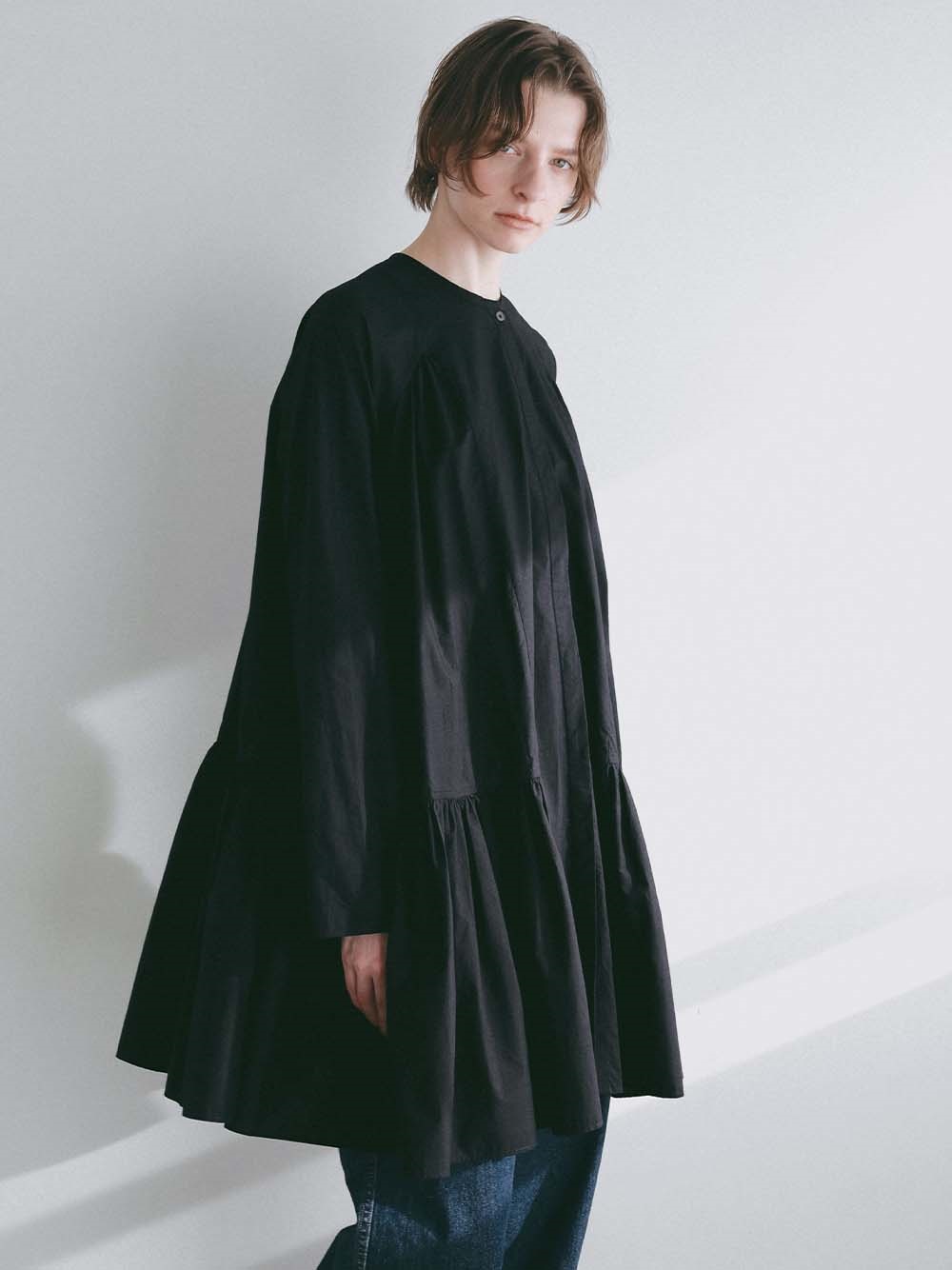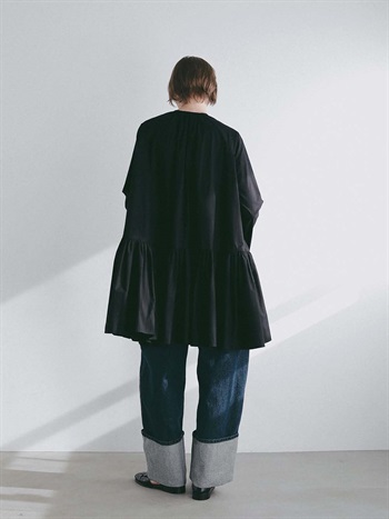 贅沢に使用した分量あるギャザーフレアが、動くたびに揺れて華やかな印象に。