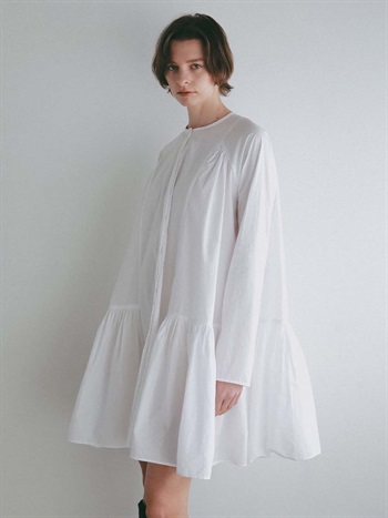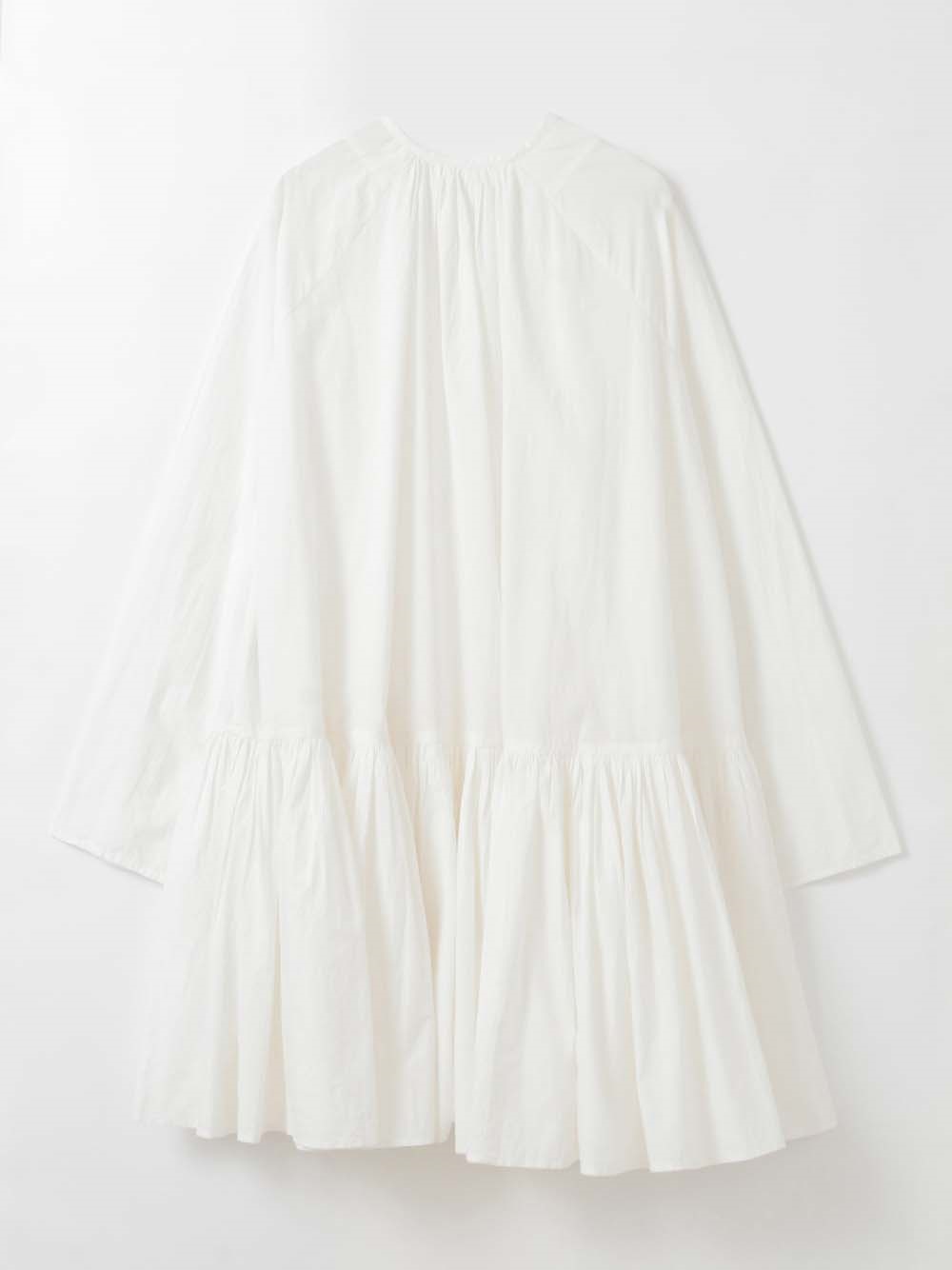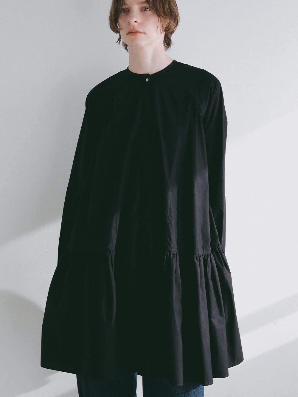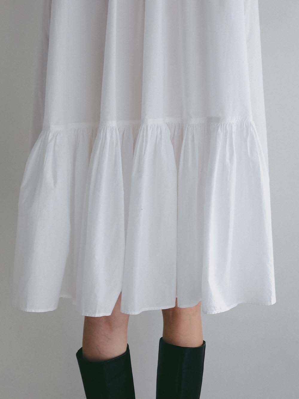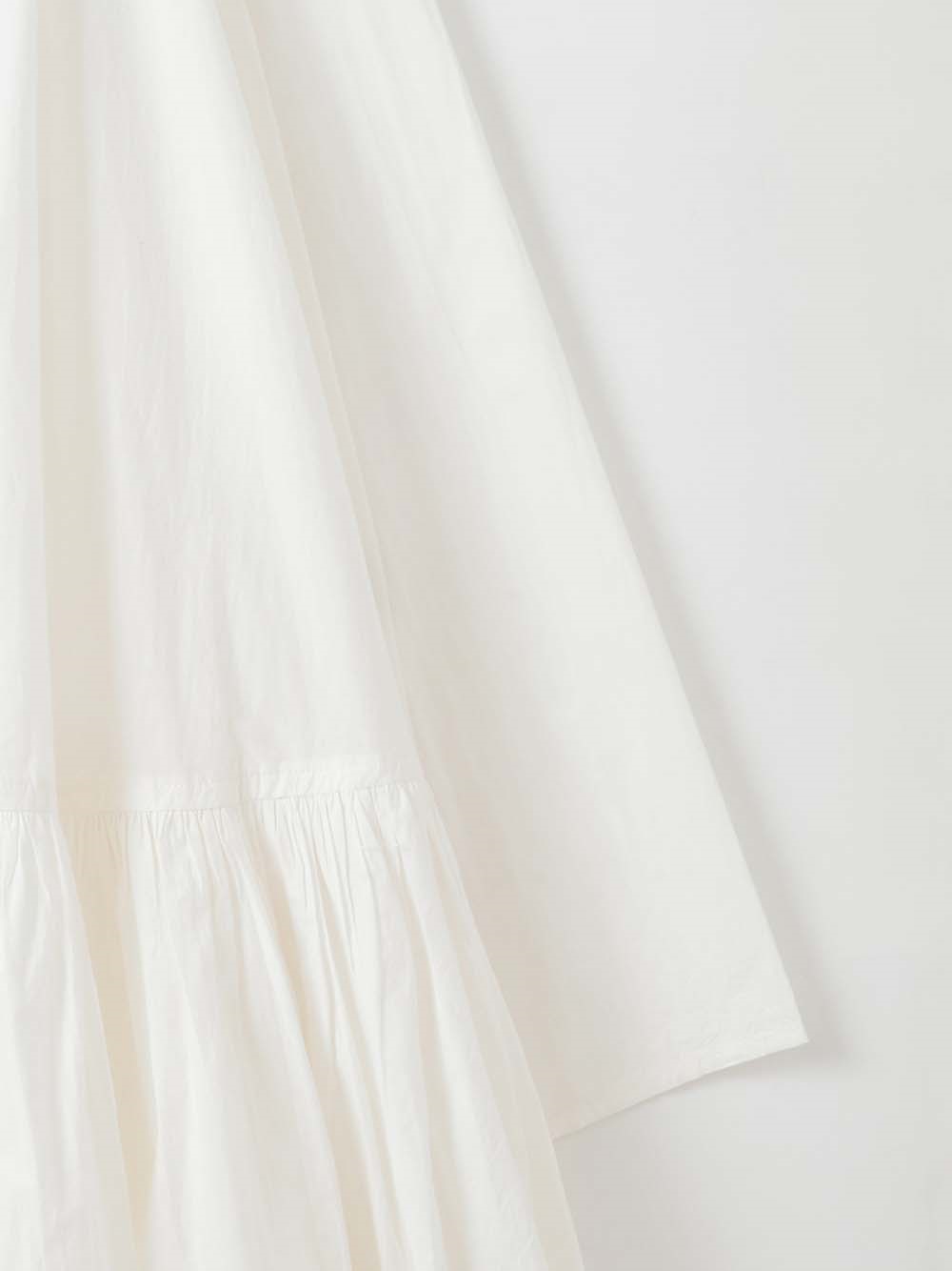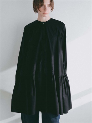 贅沢に使用した分量あるギャザーフレアが、動くたびに揺れて華やかな印象に。