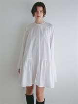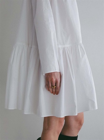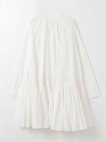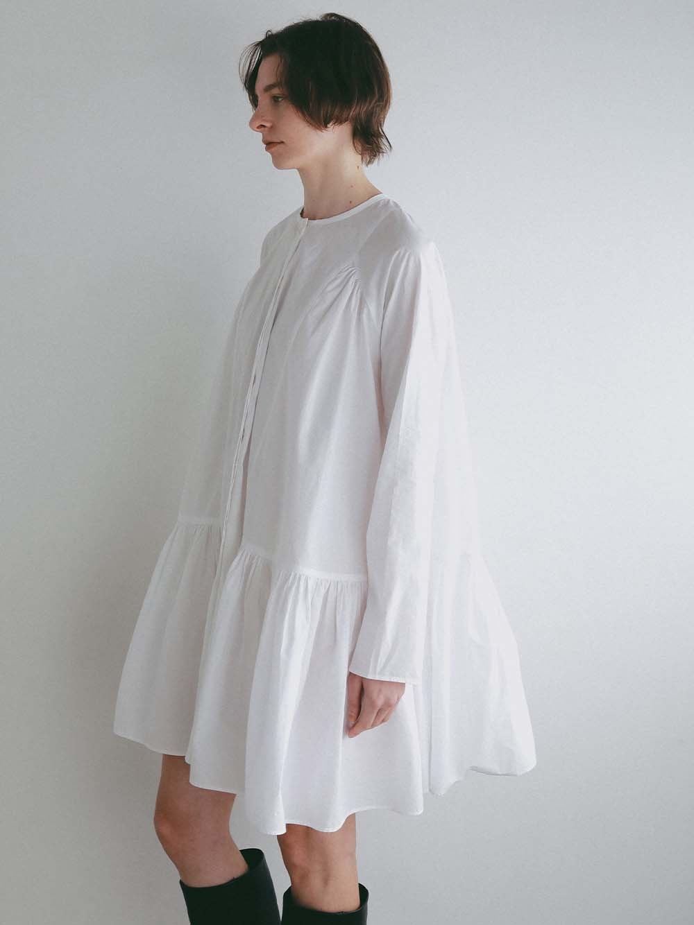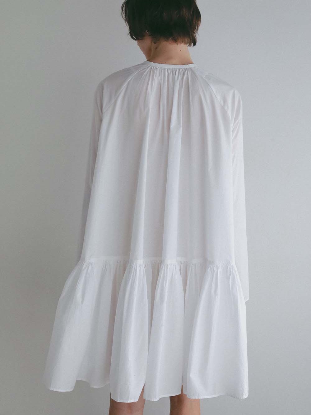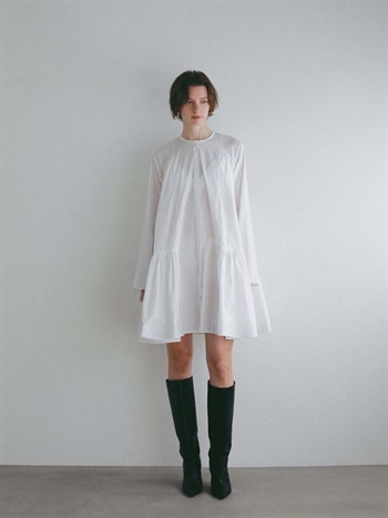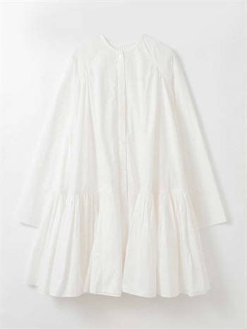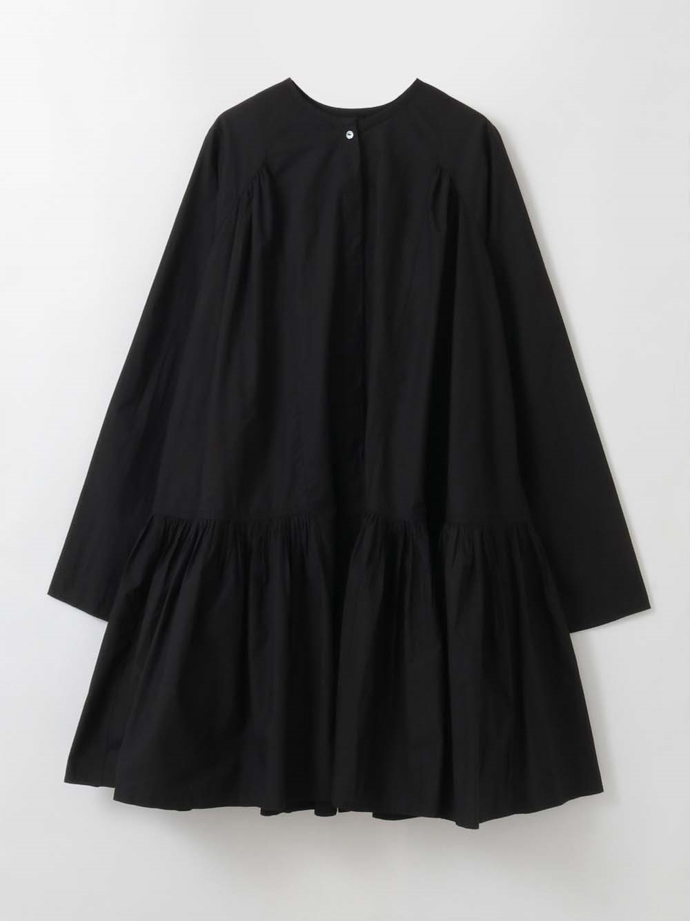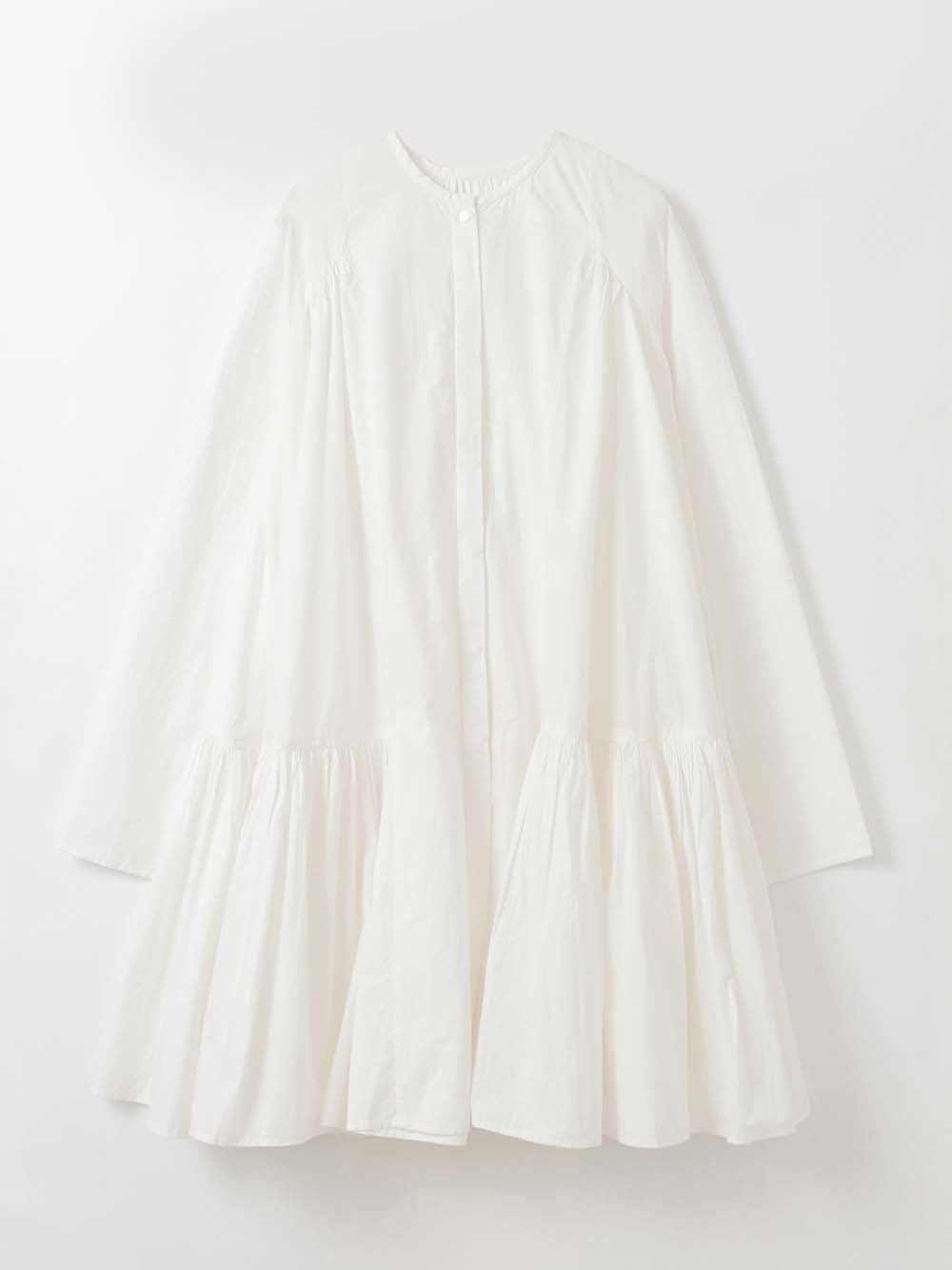 贅沢に使用した分量あるギャザーフレアが、動くたびに揺れて華やかな印象に。