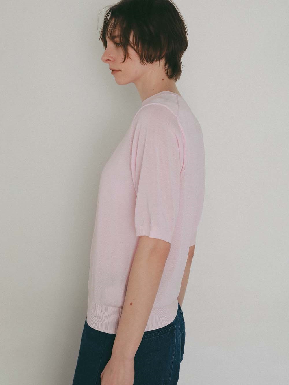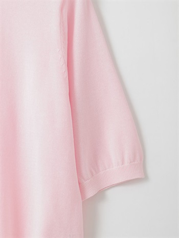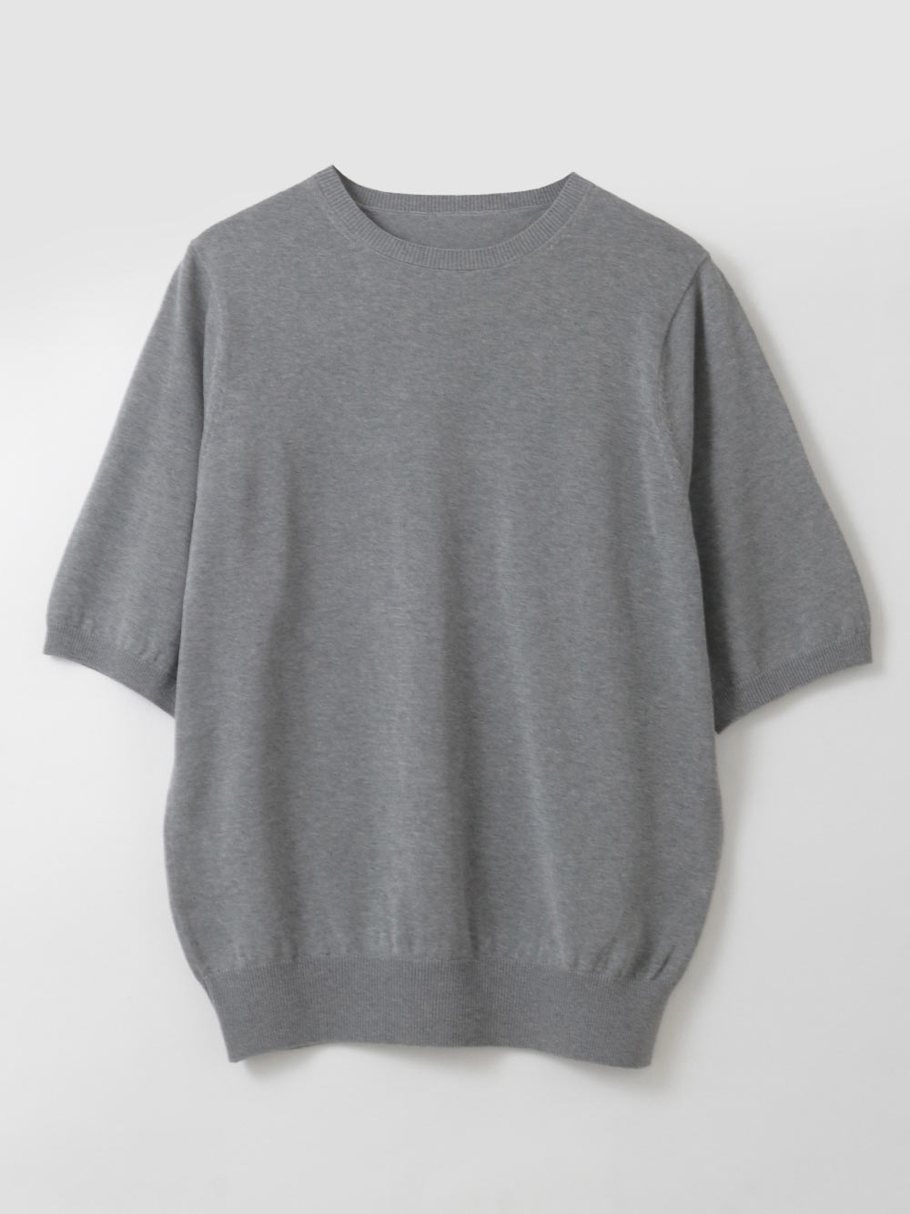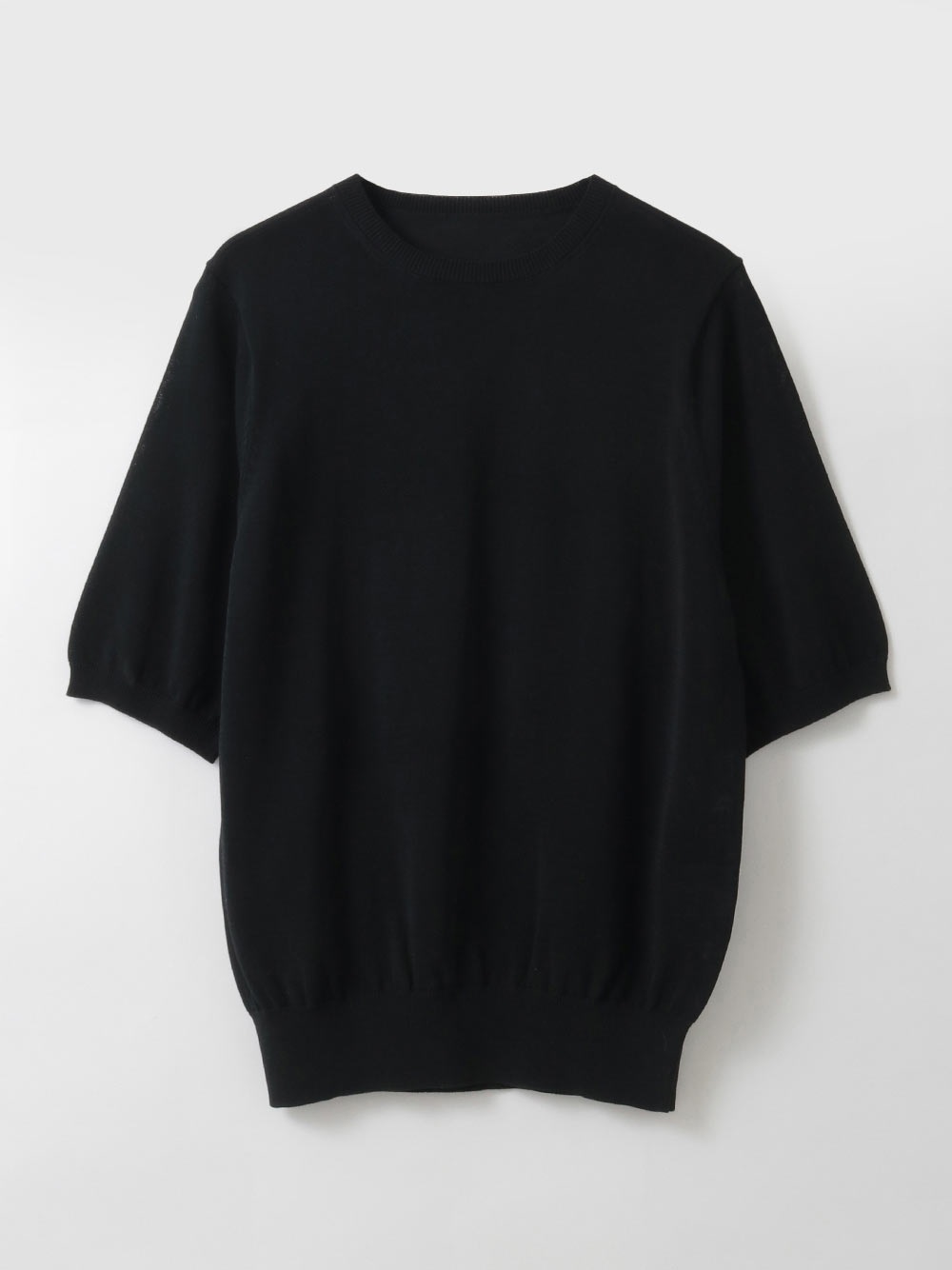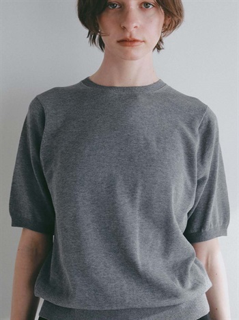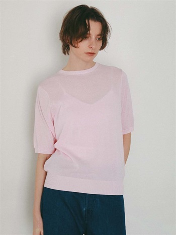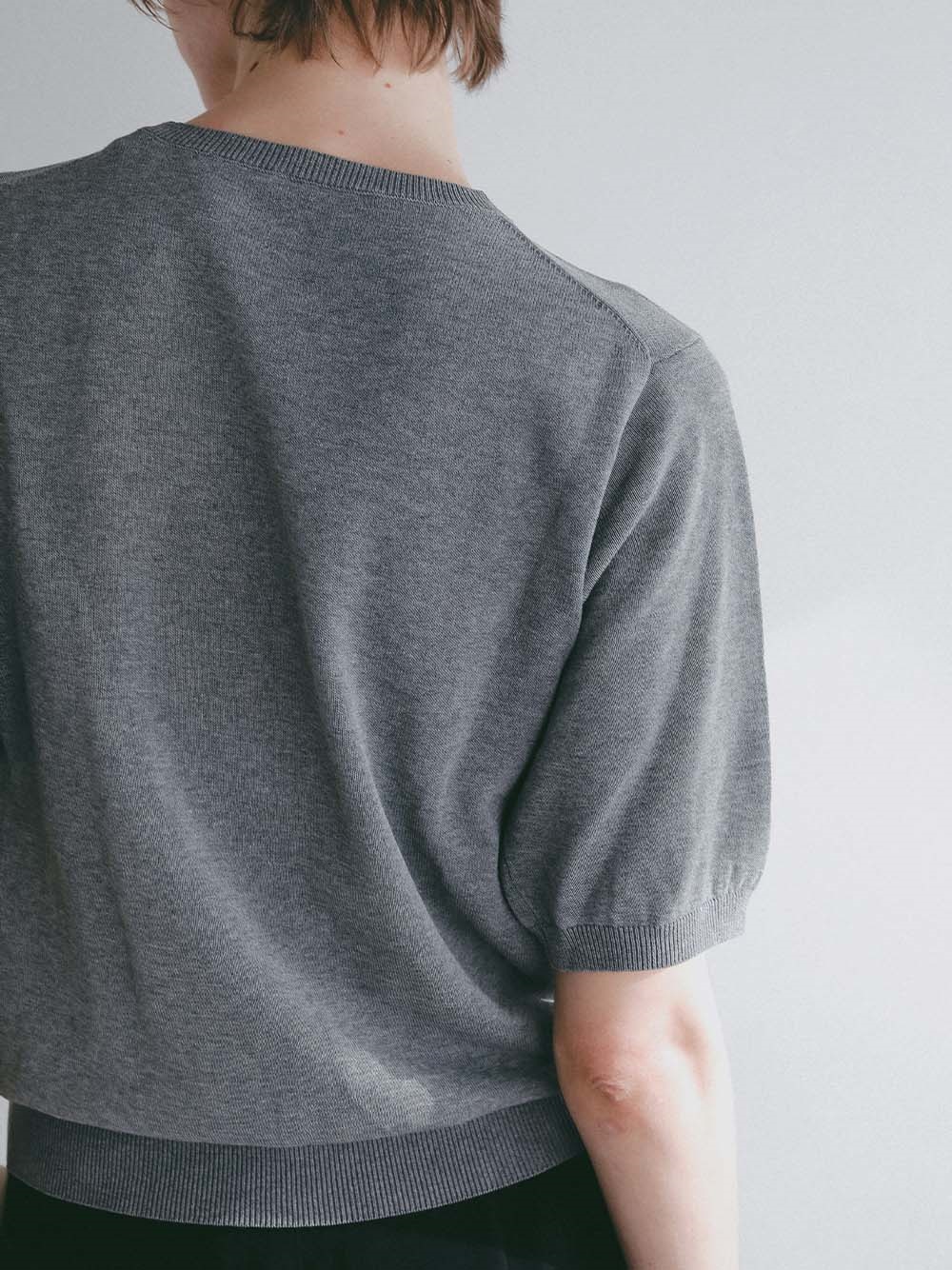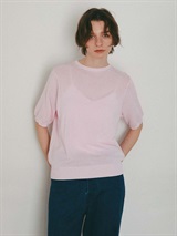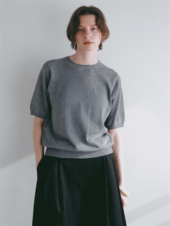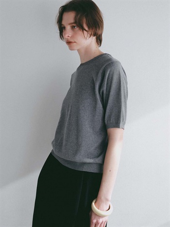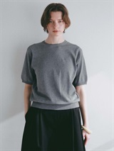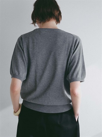 コットンナイロンのドライタッチな糸を使用し編みあてたハーフスリーブプルオーバー。