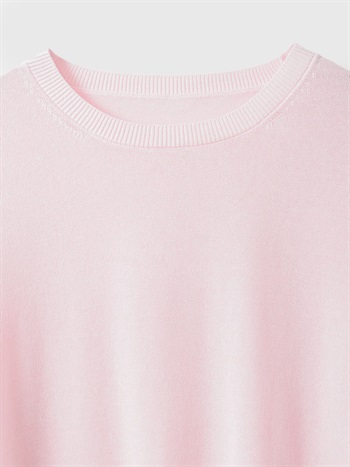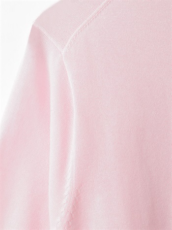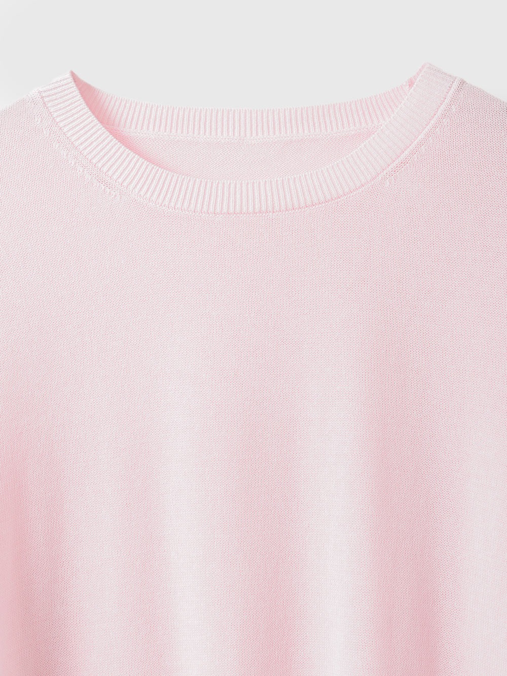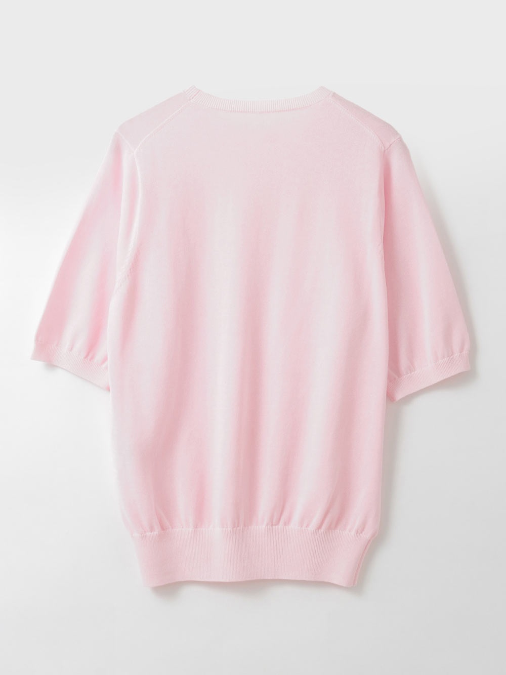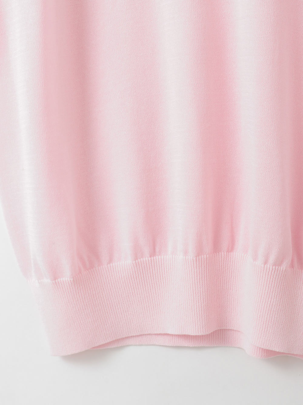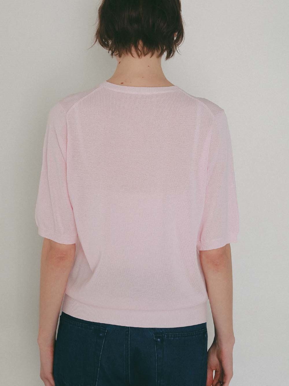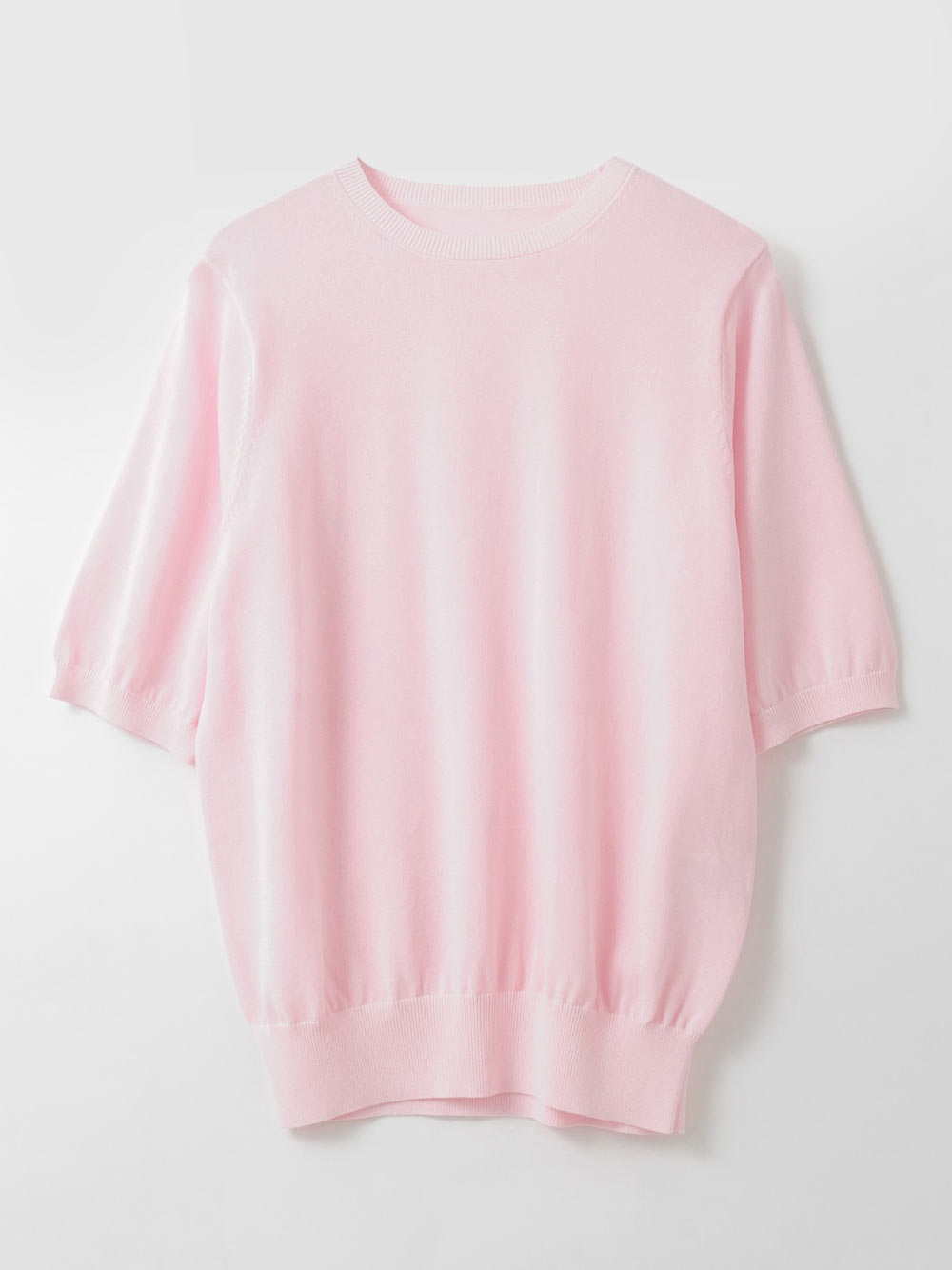 コットンナイロンのドライタッチな糸を使用し編みあてたハーフスリーブプルオーバー。