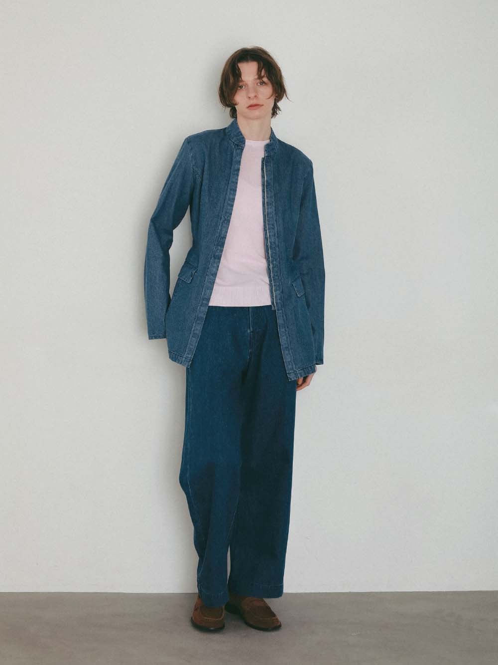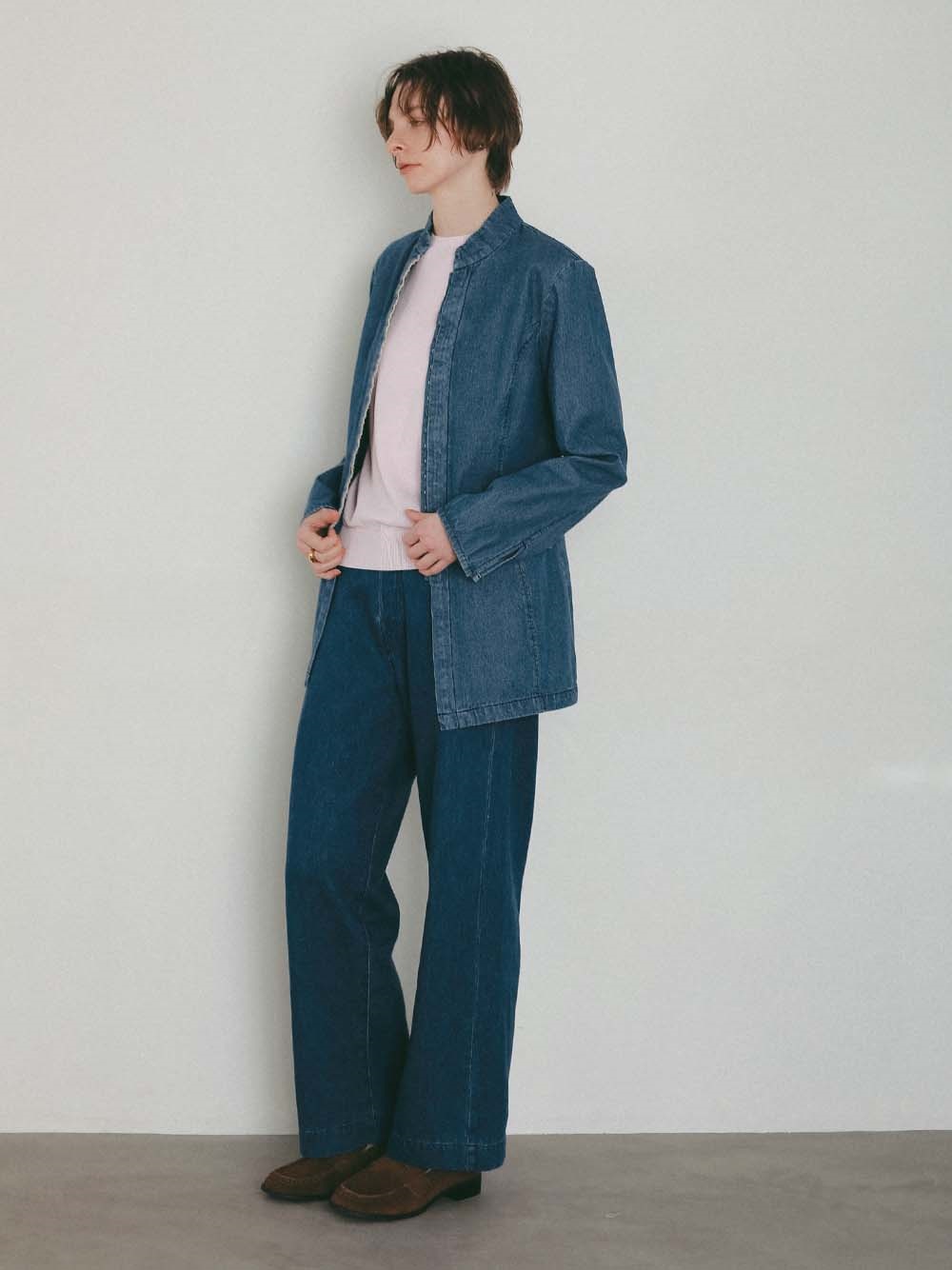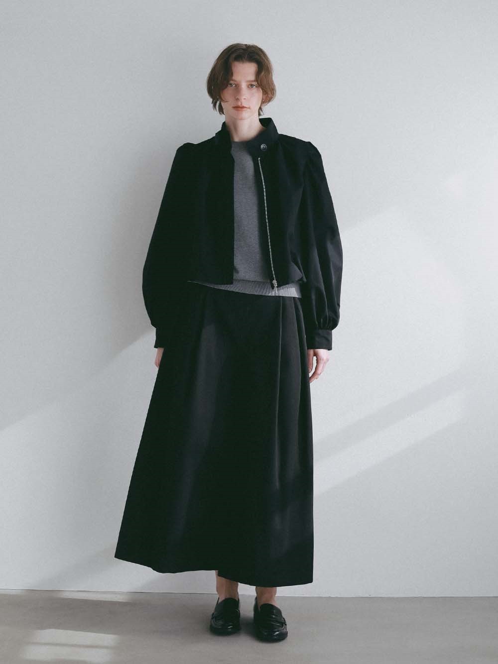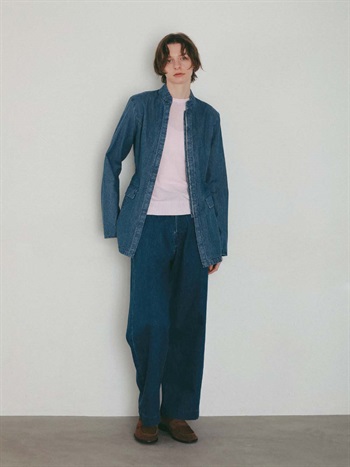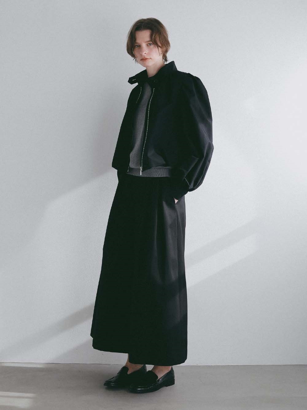 体のラインを拾わないサイズ感で、幅広いボトムスと相性よく、汎用性の高い1枚です。