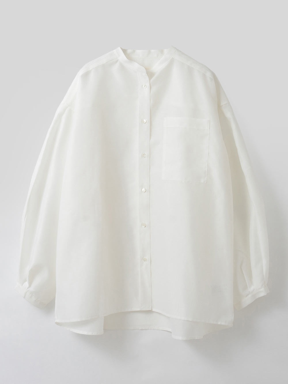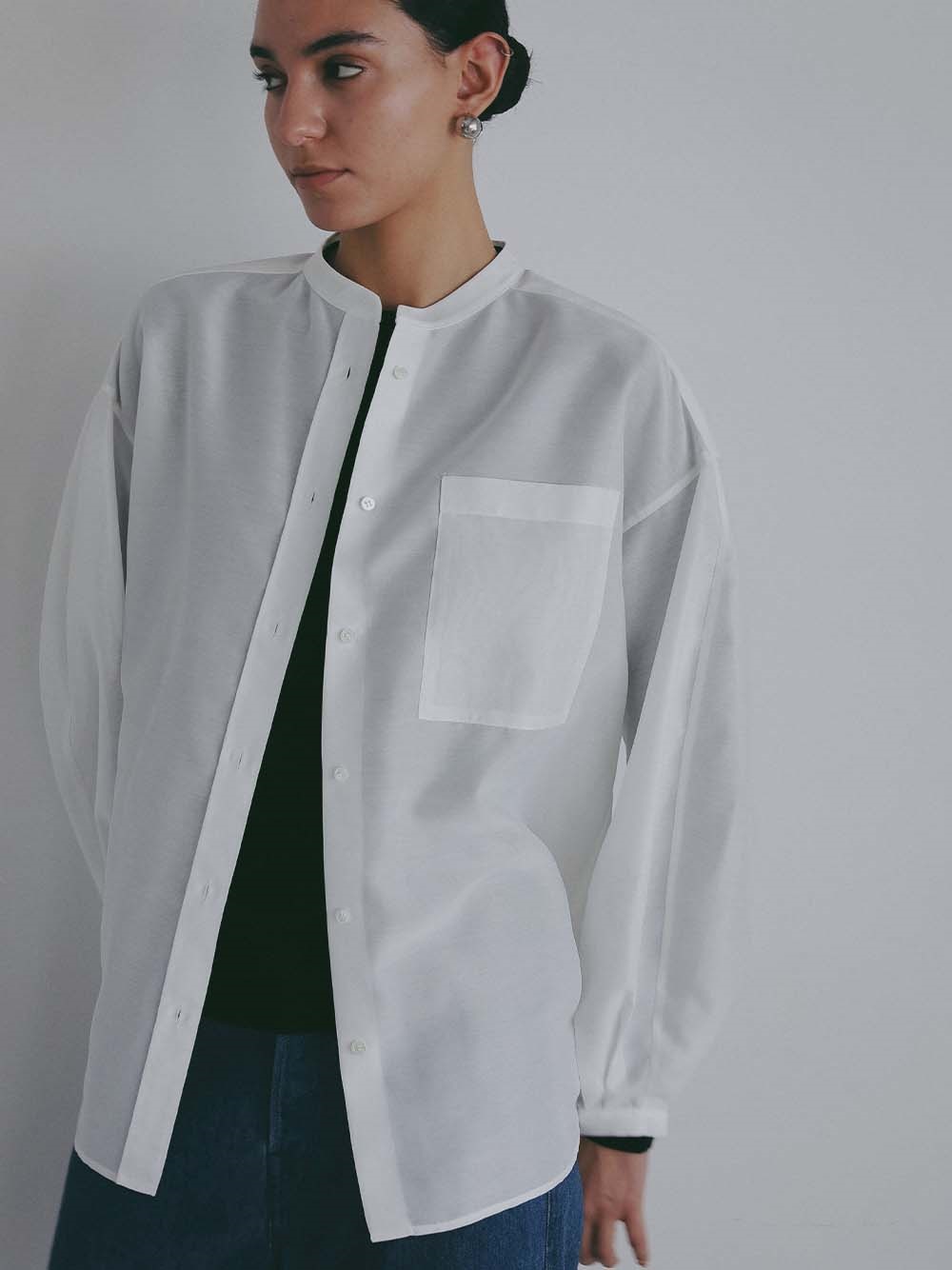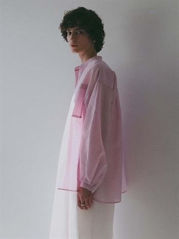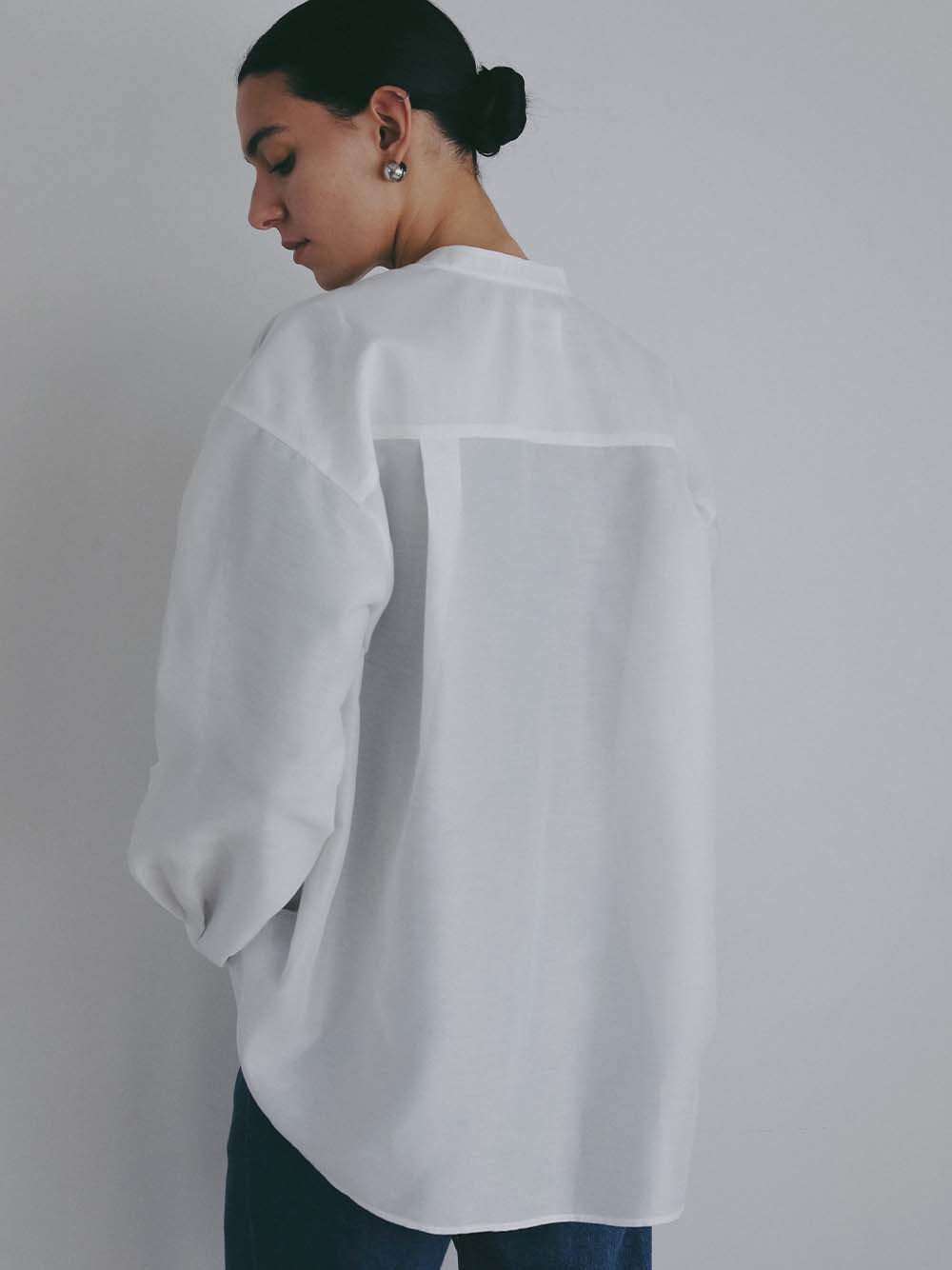 立体的なハリ感で袖のボリュームが印象的なシアーシャツ。