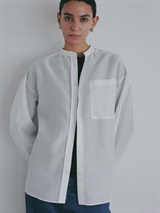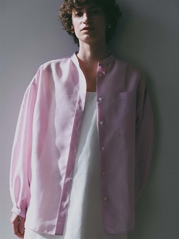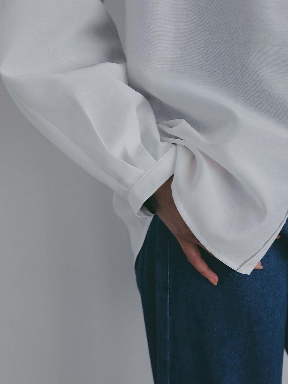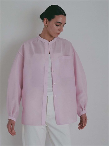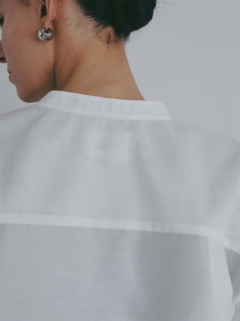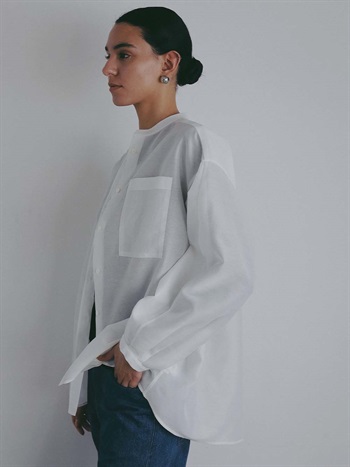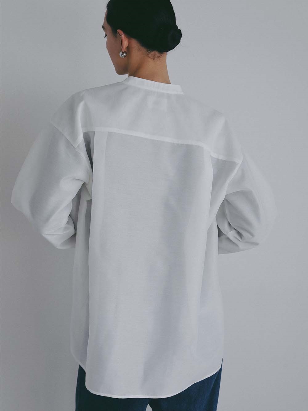 立体的なハリ感で袖のボリュームが印象的なシアーシャツ。