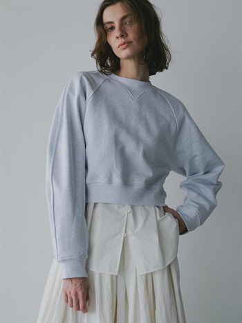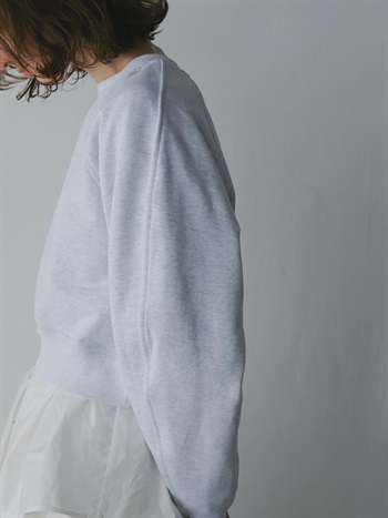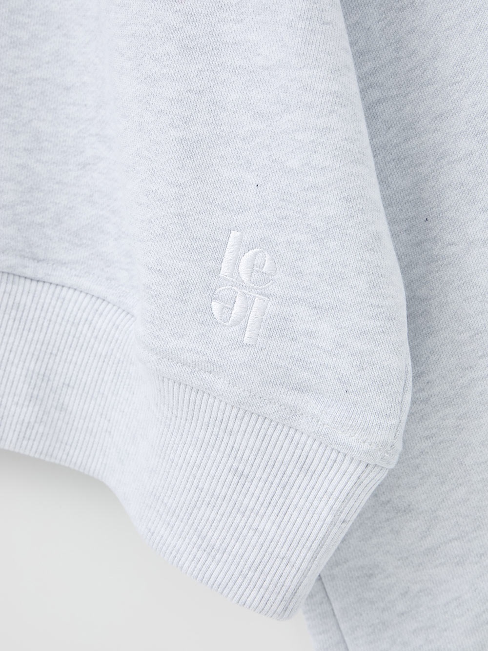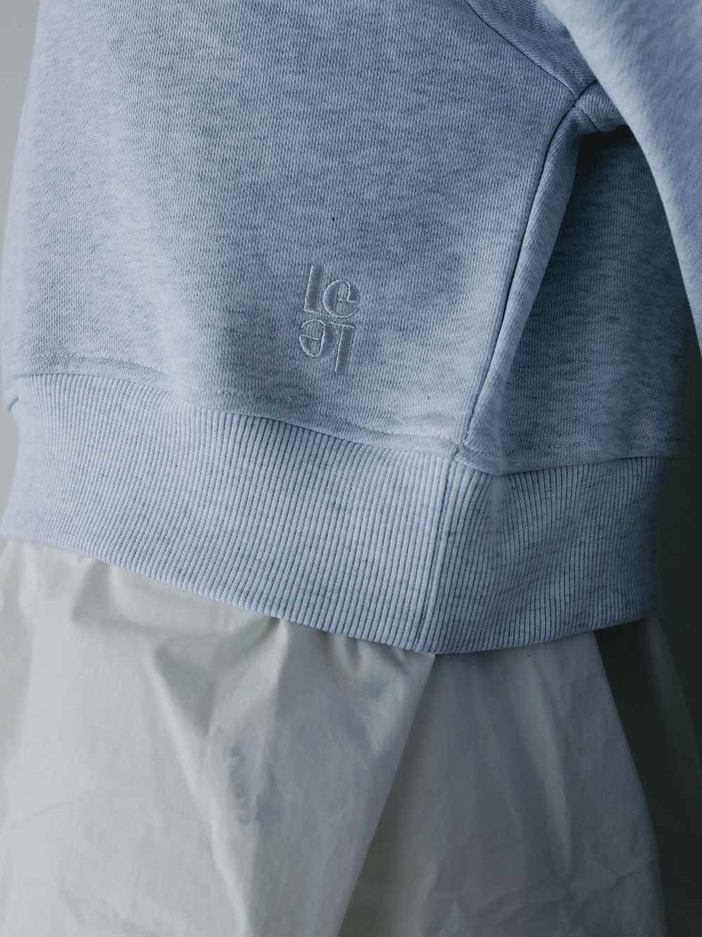 ONLINE STORE限定の別注カラーのアイテム。 裾に入ったLeのロゴ刺繍がポイント。トレンドライクなショート丈のスエットがコーディネートのアクセントに。