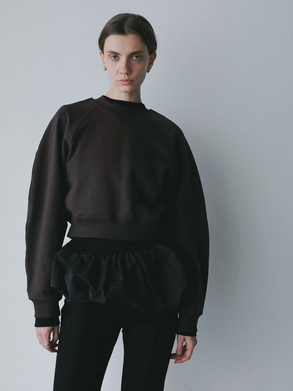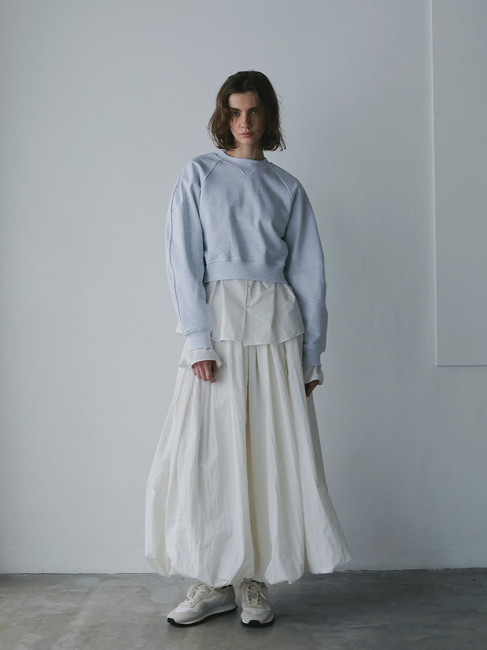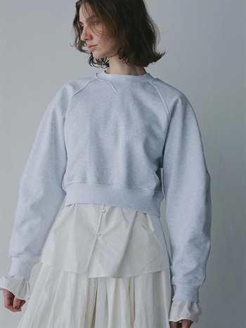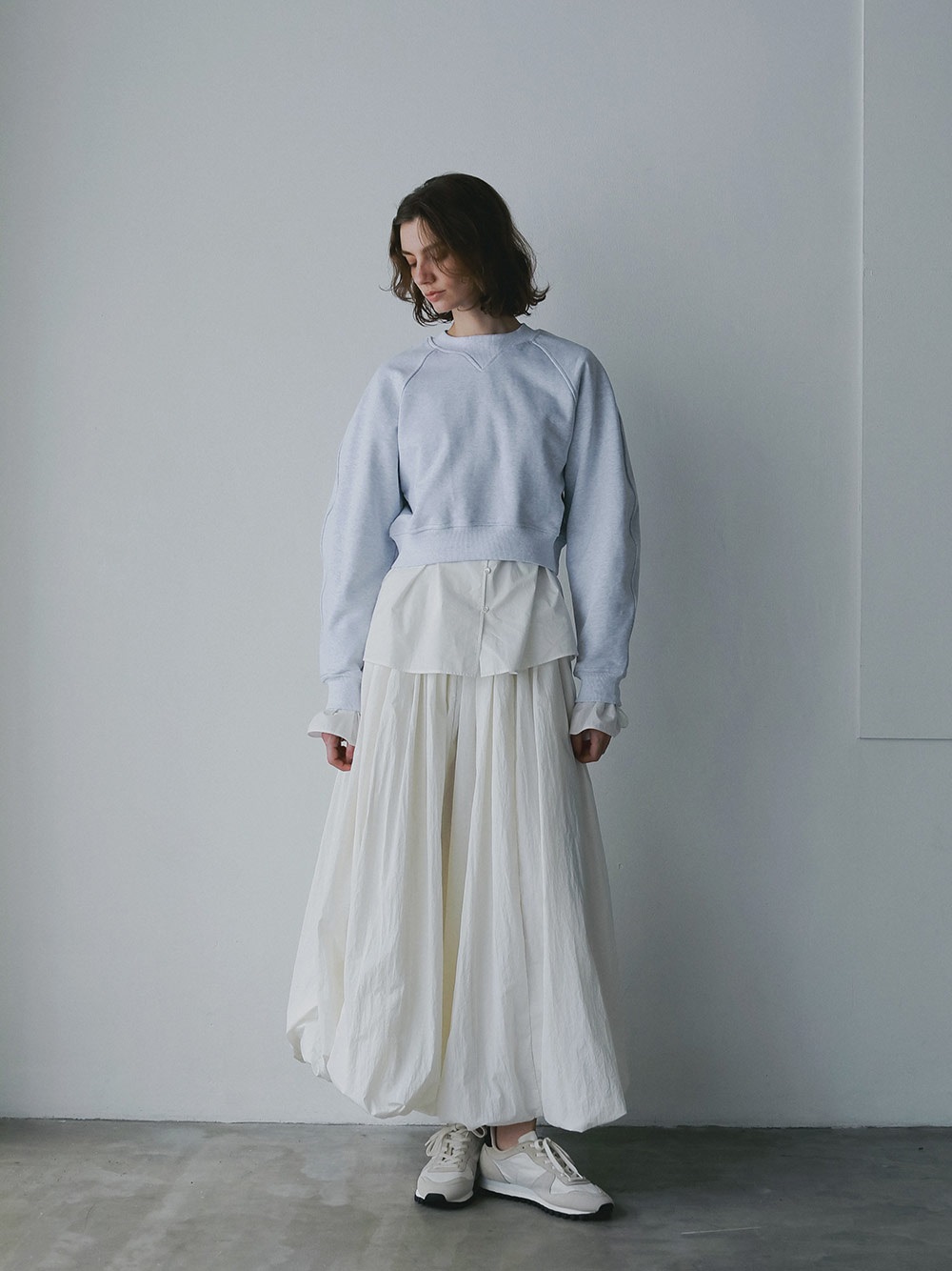 ONLINE STORE限定の別注カラーのアイテム。 裾に入ったLeのロゴ刺繍がポイント。トレンドライクなショート丈のスエットがコーディネートのアクセントに。