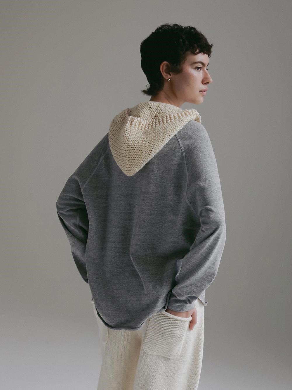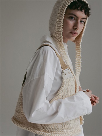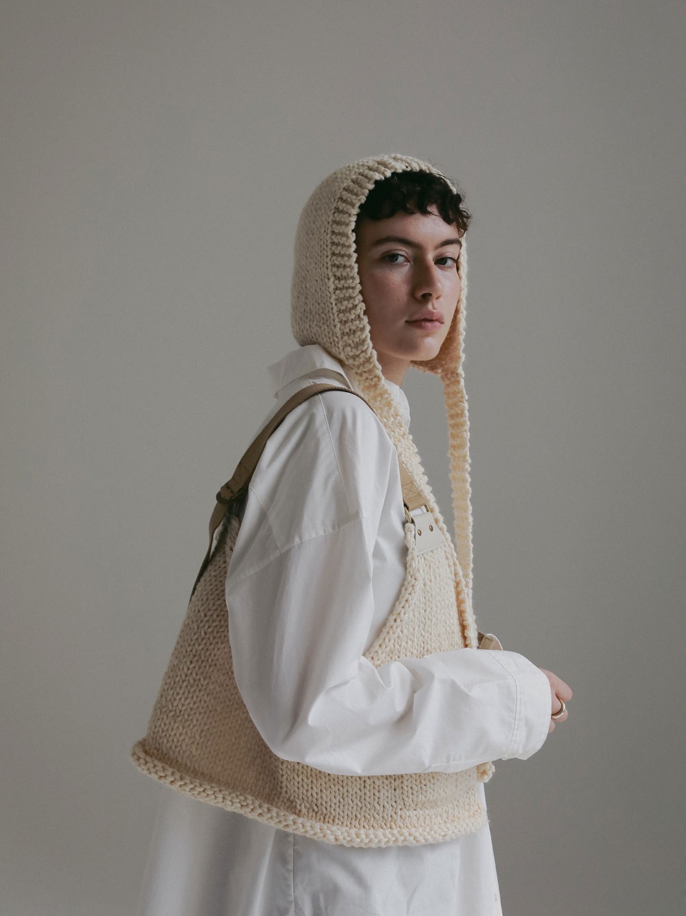 シグネチャーのハンドニットをメインに2019AWスタート。国内生産にこだわり布帛・カット・ニットの知識を生かして機械編みだけではなく、背景の数少ないハンドニットや家庭機、手横機を生かしたニットを多く展開する。