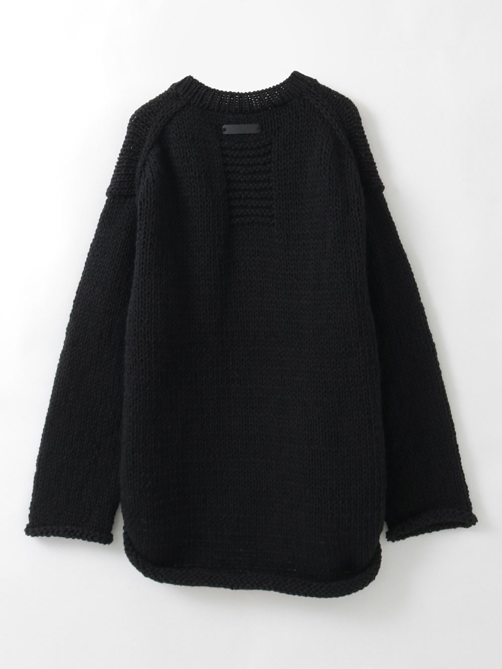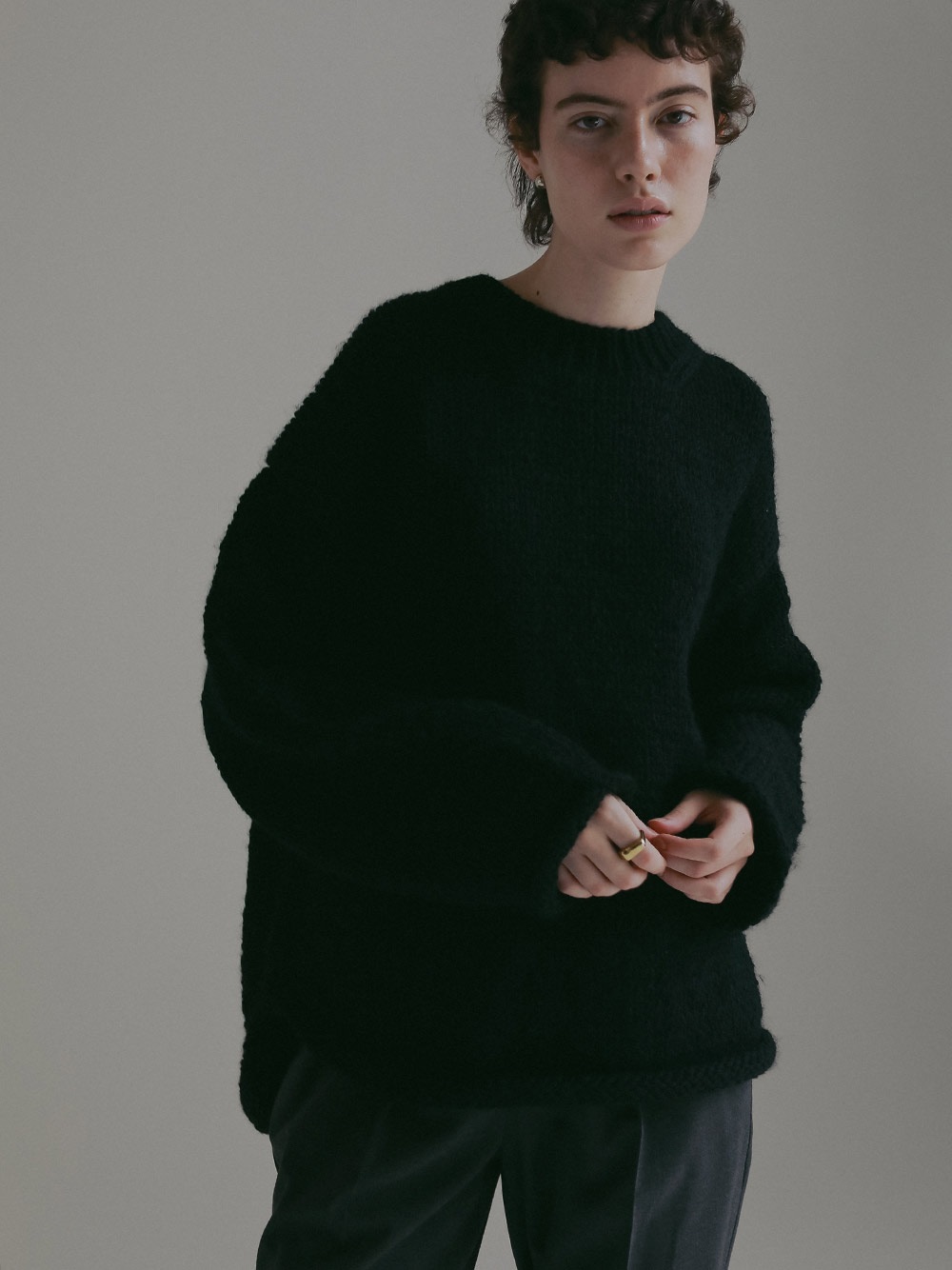 シグネチャーのハンドニットをメインに2019AWスタート。国内生産にこだわり布帛・カット・ニットの知識を生かして機械編みだけではなく、背景の数少ないハンドニットや家庭機、手横機を生かしたニットを多く展開する。