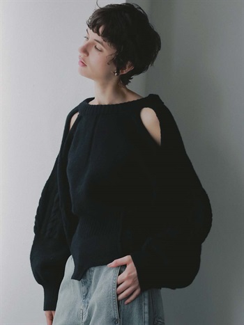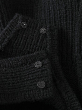 背景の数少ないハンドニットや家庭機、手横機を生かしたニットを多く展開する。